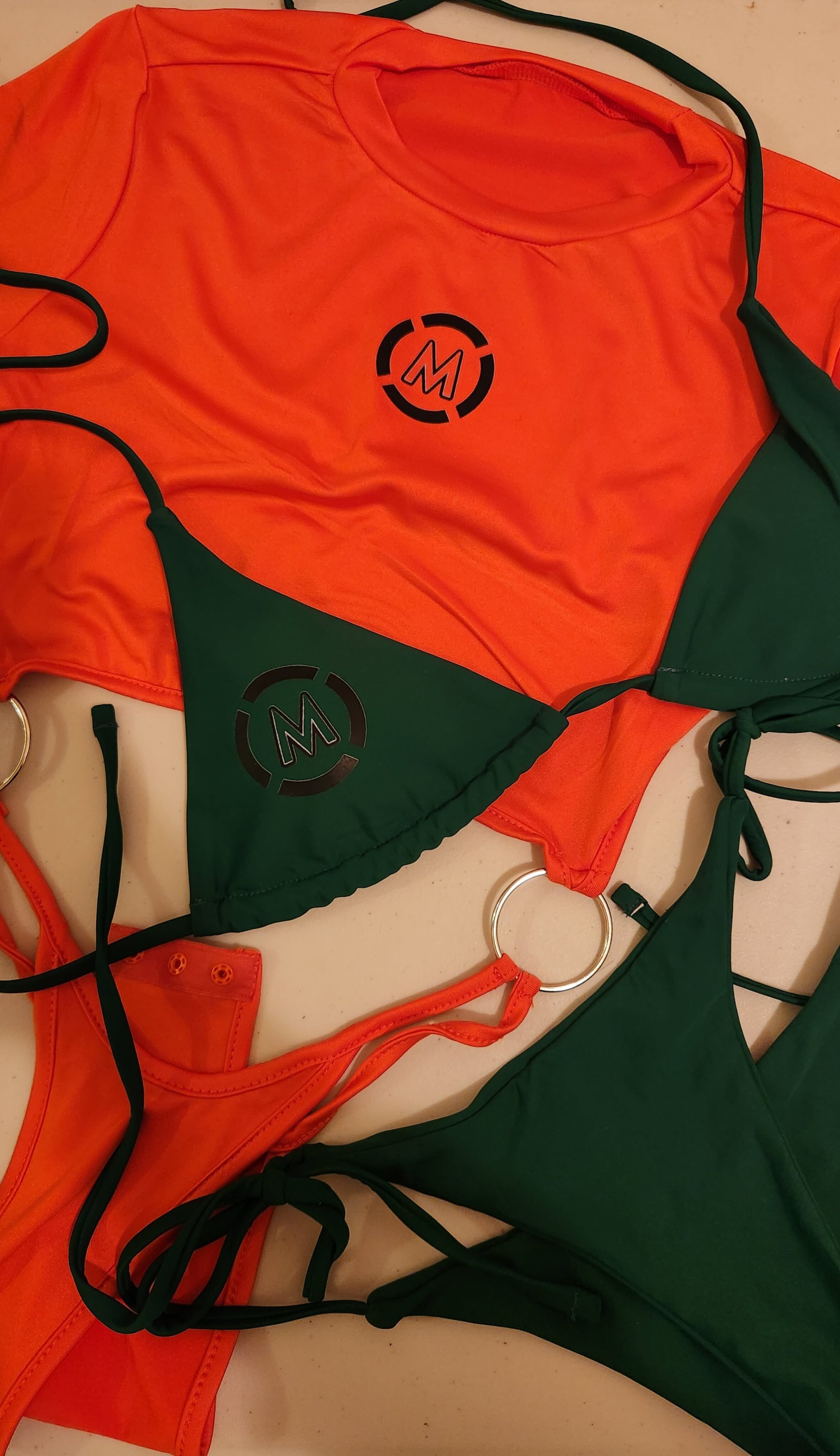 Our location swim also features a Bubble Gum Pink bandeau top with matching high waist bikini bottom. Can be bought as set or sold separately per your liking. If set option is chosen the same size for both top and bottom will be sent.